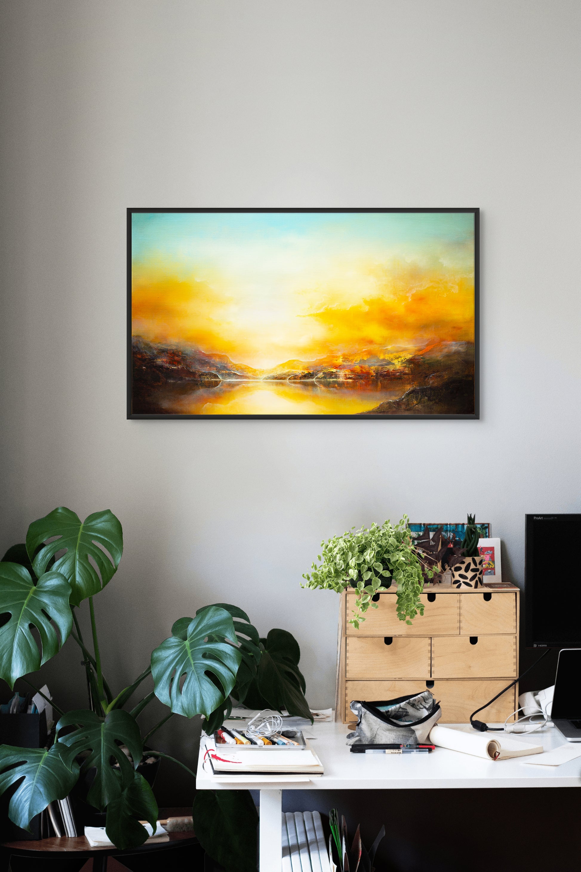 Framed dimensions: 55 x 90 cm