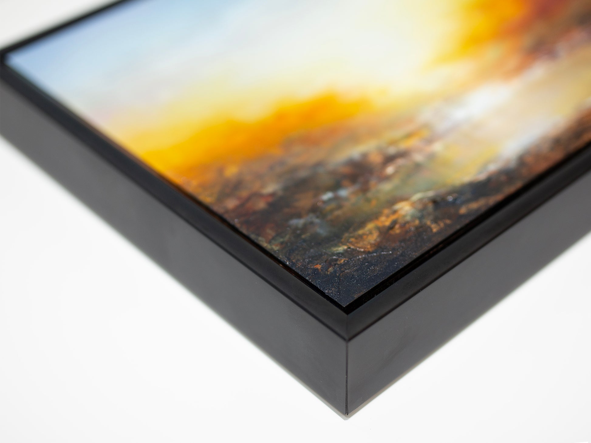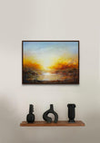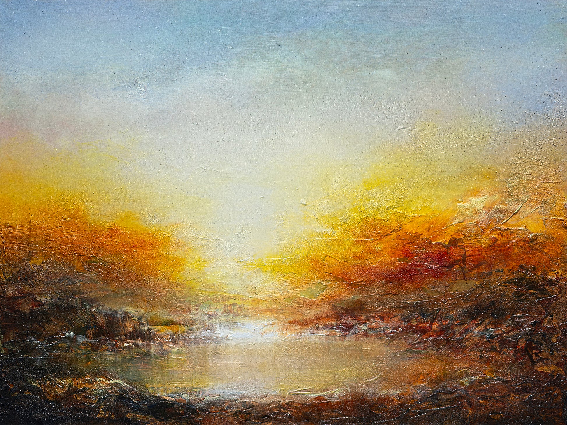 Mostly referencing the semi-abstract landscape paintings by JMW Turner, Ancog builds layers of oil on textured under paintings to achieve the translucent and vibrant colours reminiscent of works of the old maters. However, he illuminate the landscapes with his expert use of tonal values utilising a contemporary palette that brings comforting warmth and elevating luminosity. The compositions are not based on particular place but rather imagined images of tumultuous yet serene vista, allowing us the experience the sublime.