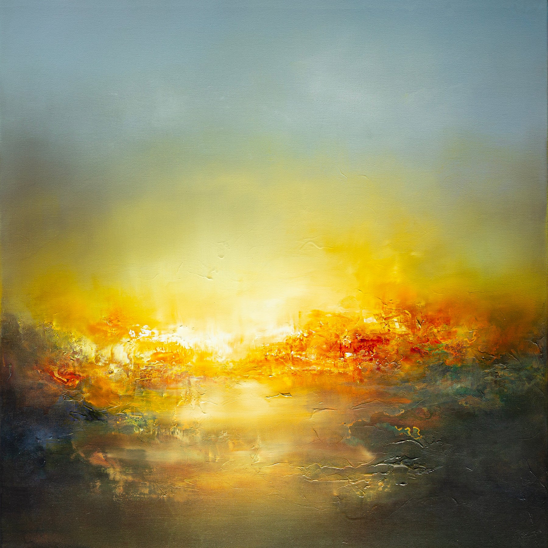 Mostly referencing the semi-abstract landscape paintings by JMW Turner, Ancog builds layers of oil on textured under paintings to achieve the translucent and vibrant colours reminiscent of works of the old maters. However, he illuminate the landscapes with his expert use of tonal values utilising a contemporary palette that brings comforting warmth and elevating luminosity. The compositions are not based on particular place but rather imagined images of tumultuous yet serene vista, allowing us the experience the sublime.