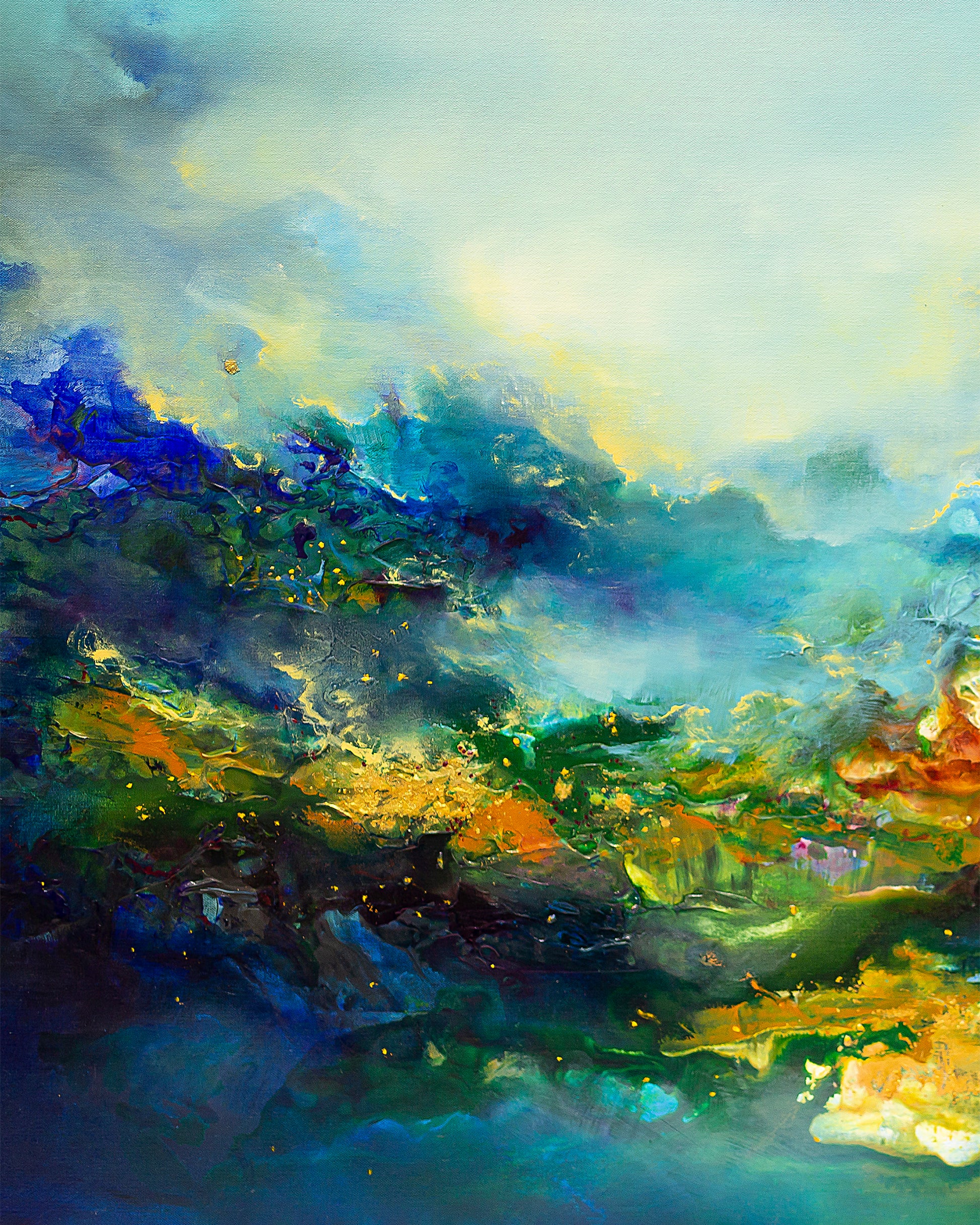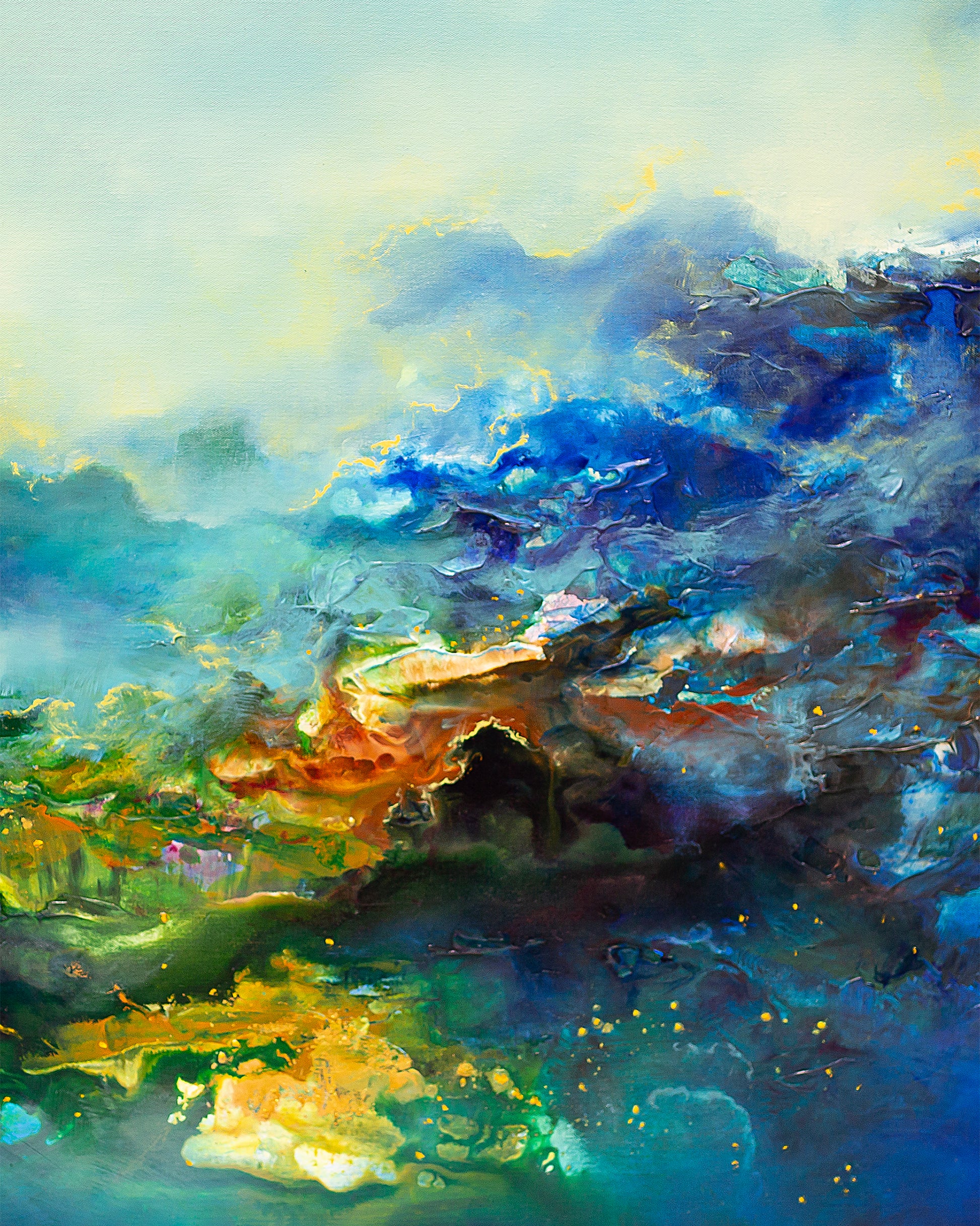 "Sacred Realm" by Kris Ancog encapsulates the essence of the sublime. Drawing inspiration from the natural world's luminous beauty and an imagined sacred realm, this series aspires to evoke the profound enigma of what lies beyond our comprehension. It beckons us to pause, to introspect, and to surrender ourselves to an enchanting universe. In this captivating journey, we discover a profound appreciation for our inherent connection with nature, ultimately leading us to a profound sense of oneness.