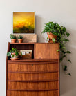 Sacred Realm is a series exploring emotions through colours and textures. It delves into themes of tranquility and serenity in the midst of chaos. These mixed media paintings were created with inks and multiple translucent layers of oil paints and comes in a white float frame.
